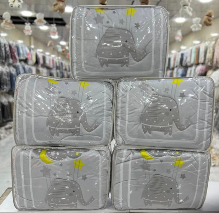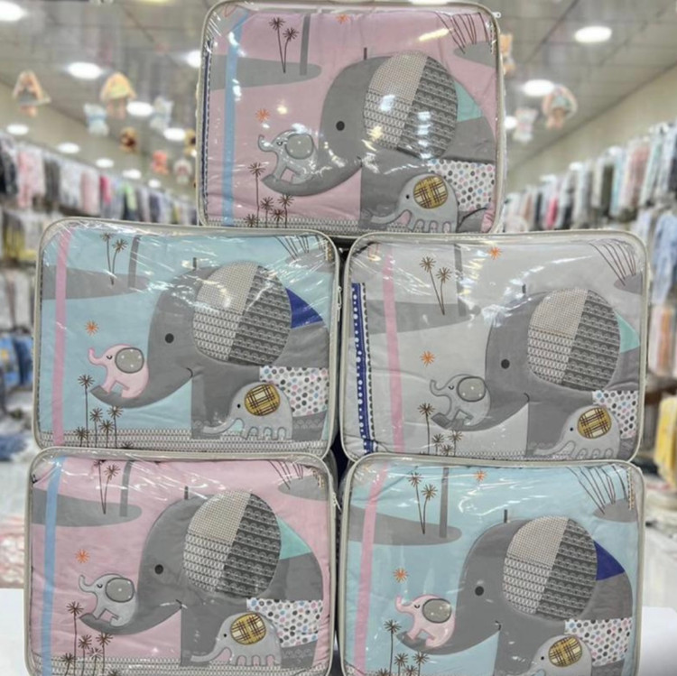 هفت تیکه که شامل ملحفه روی تخت سه عدد گارد نرده تخت لاحاف و بالش